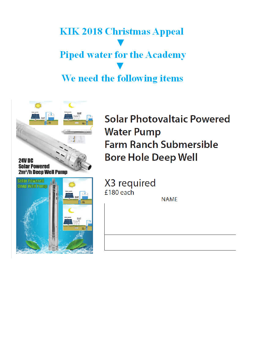 At the present time, the Academy and the pods on the KIK land get their water from our well. Simple enough, maybe, but carrying 70/80 bucketfuls a day is no easy task. In addition, the Education Ministry insists that schools have access to piped water.