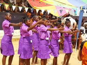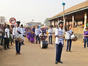 We are delighted to report the official opening of the KIK Academy – the culmination of years of generosity and hard work. The day began with a march by the children, accompanied by the Kailahun Brass Band, from the Courthouse to the KIK House on Morfindor Road. Transport was then used to take everyone to the KIK land.